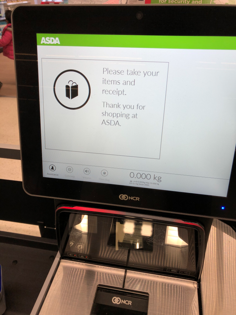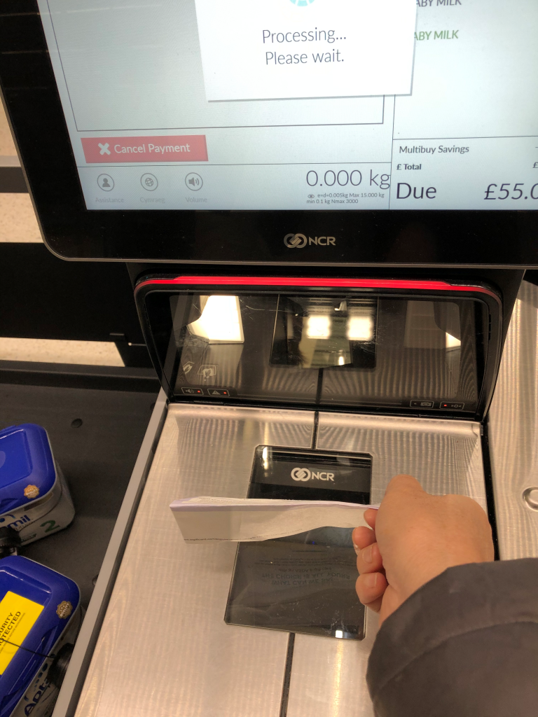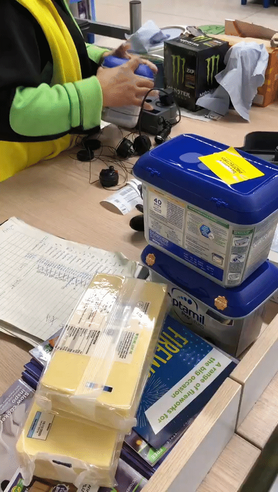 第九步,你去无人售货机器商扫商品的条码,扫一次金额跳上去一点。扫完4只,收费55英镑。