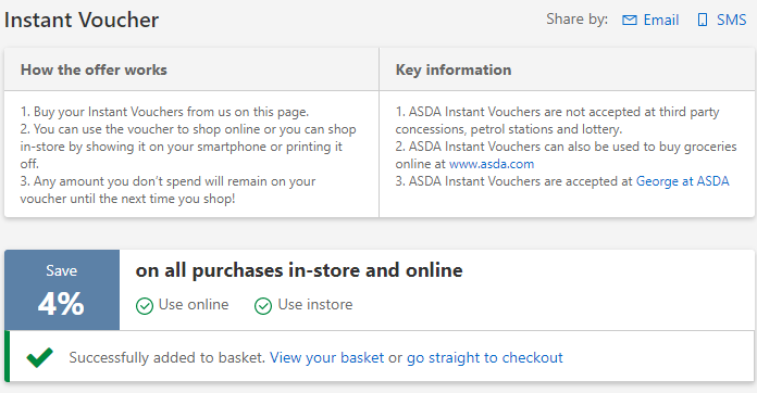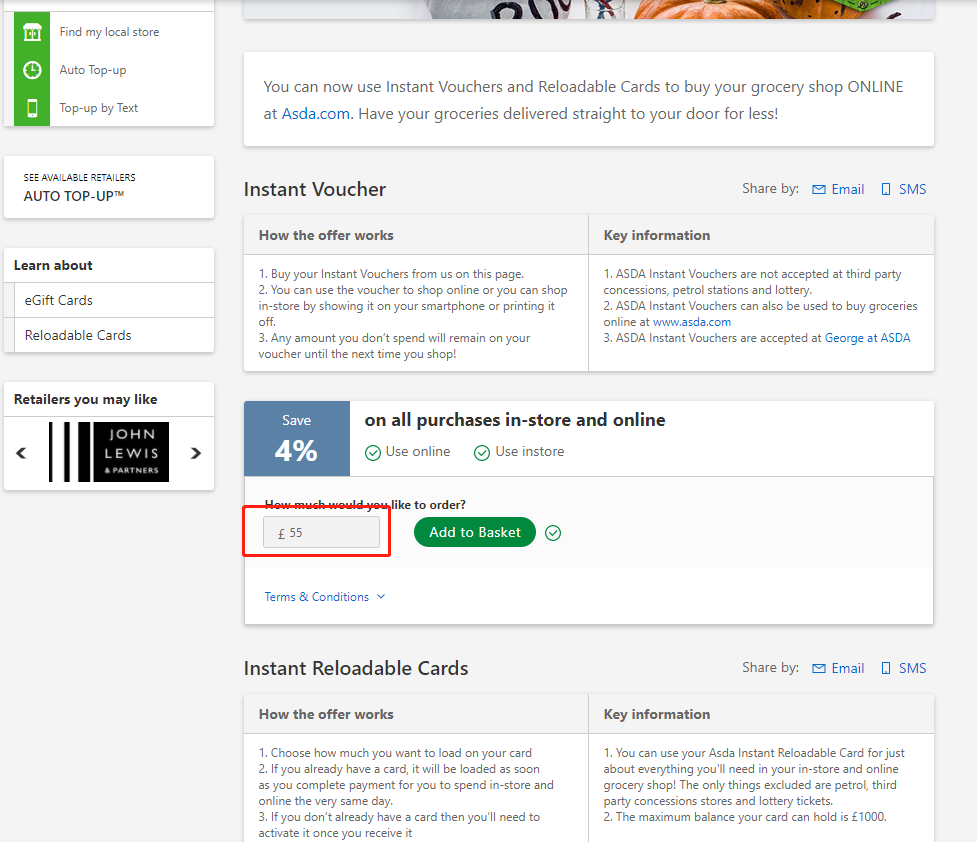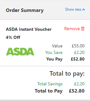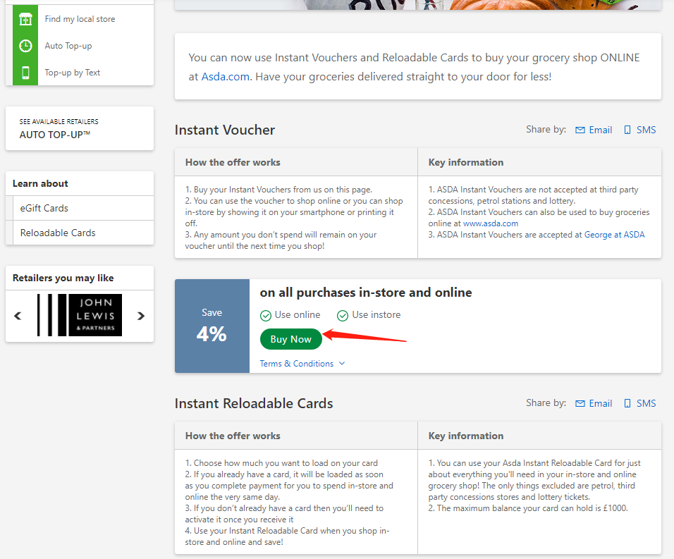asda卡有的时候可以5%off ,大多数时间是4%off ,我们全都让给你。
