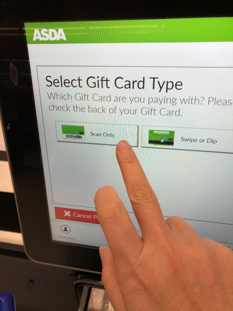 第十一步:点asda gift card 选scan 条码方式
