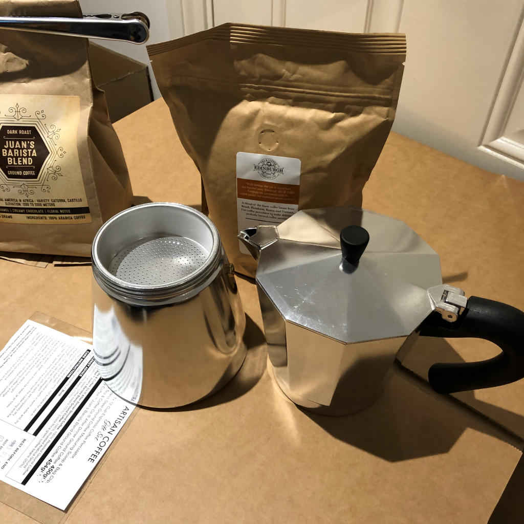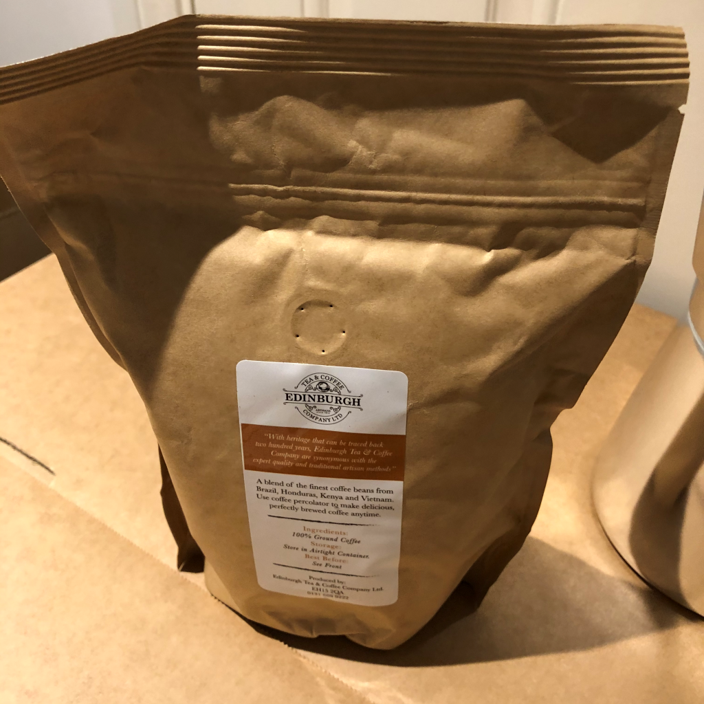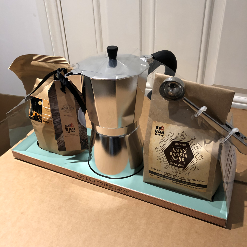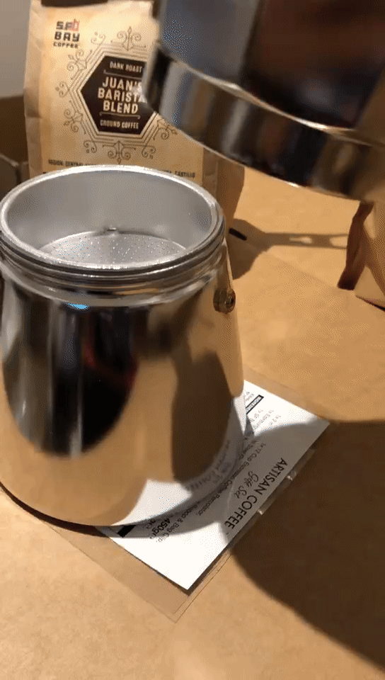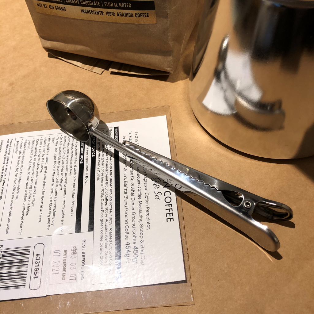 这款是礼品装,顺带了两包已经由咖啡豆研磨好的咖啡细粉。有一把挖咖啡的勺子,我们煮一次弄得出2杯350ml的咖啡汁,挖的是两平勺咖啡粉。计量单位是2平勺,如果你堆出个小山尖尖,可能分量口味会和我感受就不同了。