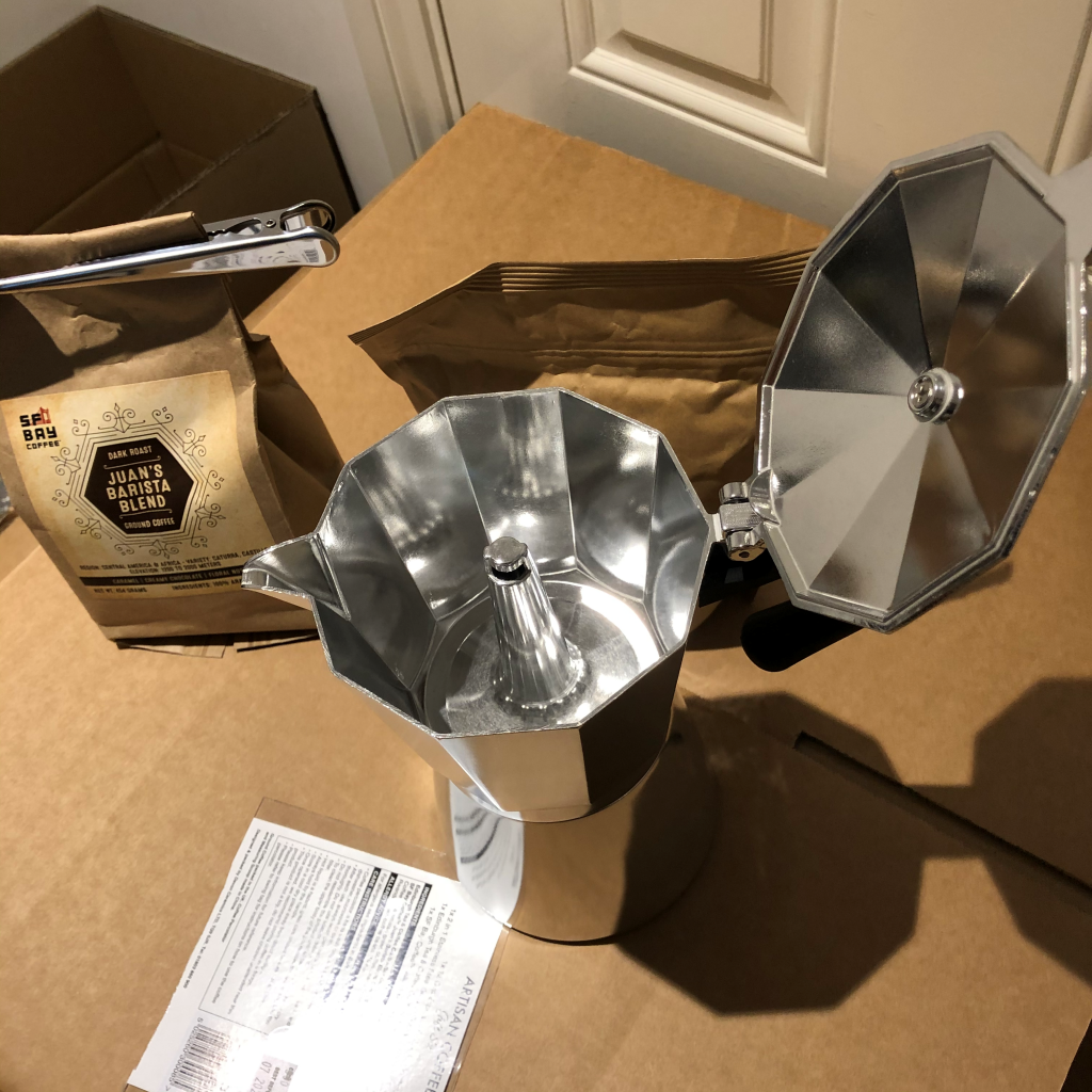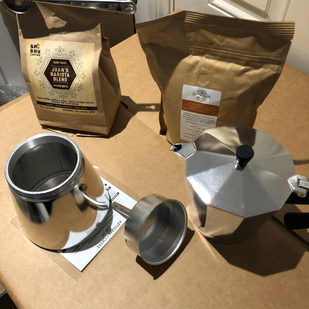 可是,这种咖啡器用的是把咖啡豆研磨成粉的方法,然后用煤气炉对着烧开开水蒸汽凝集成咖啡汁,烫口的时候兑点鲜奶进去就刚刚好,感觉得到咖啡的生命力了,半条命的那种,要是喝现磨咖啡豆制成的咖啡汁水,该是咖啡的整条命了吧。