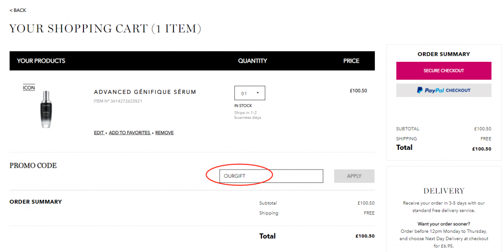 第二步,输入小黑瓶75ml Advanced genifique serum