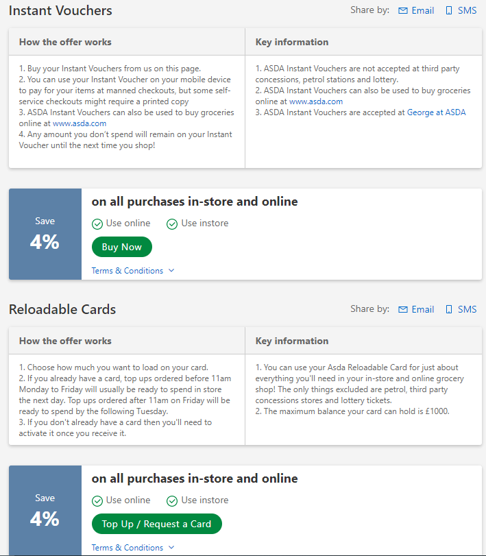 礼品卡可以折扣买到,比如现在的asda卡,你96折可以买到,支付96英镑你得到100面值的asda卡。