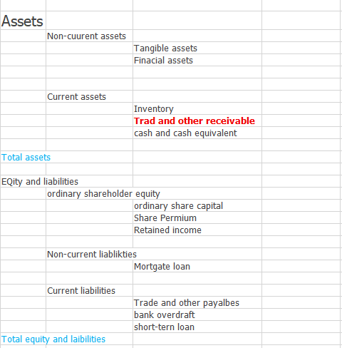 - 第一位是现金cash,现金分银行账面上的current account上的balance,和手持的现金cash on hand