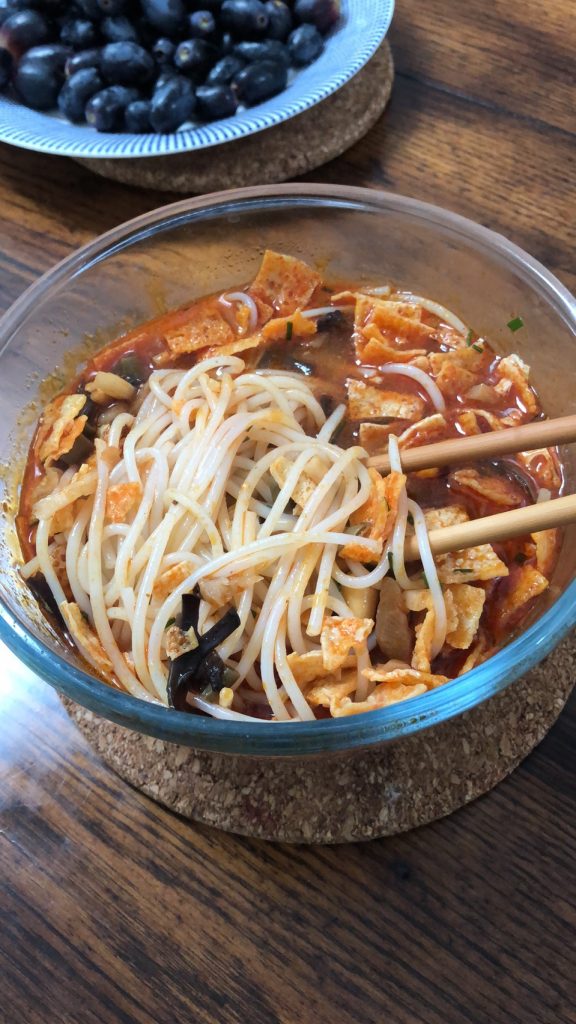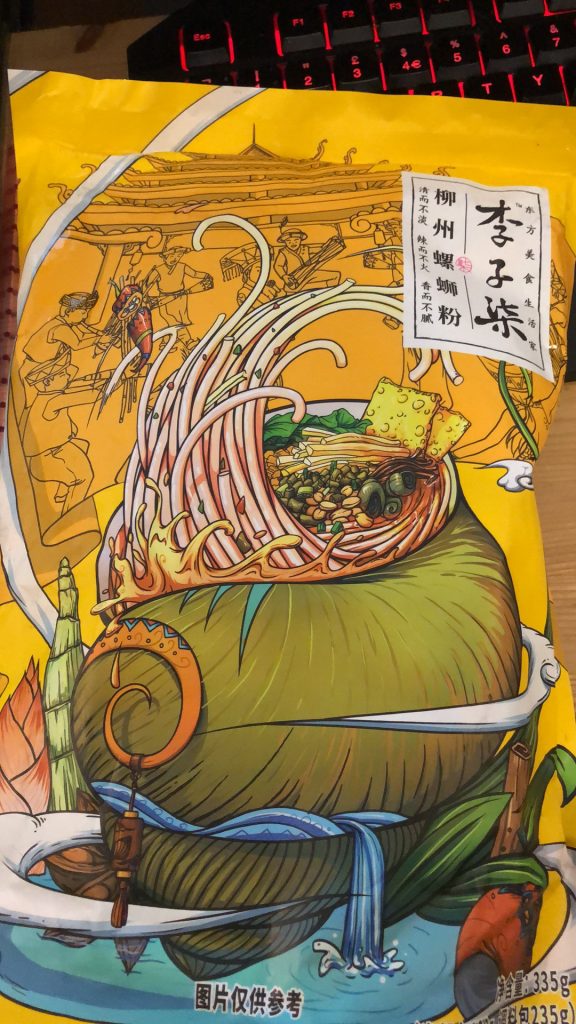昨天快速的吃掉一包李子柒螺丝粉,没来及的视频,她的那包佐料都很好尤其是花生米好吃.
