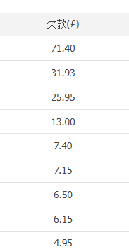 这8笔比较恶劣,其他全部是5英镑不到的欠款。
